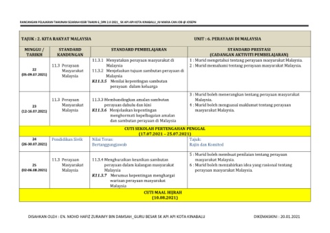 RANCANGAN PELAJARAN TAHUNAN SEJARAH KSSR TAHUN 6_DPK 2.0 2021_ SK API API KOTA KINABALU_JU MARIA CAN JOB @ JOSEPH
