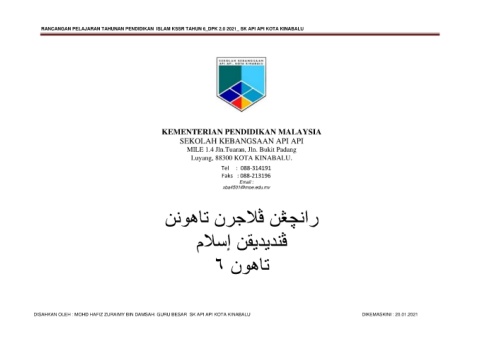 RANCANGAN PELAJARAN TAHUNAN PENDIDIKAN ISLAM KSSR TAHUN 6_DPK 2.0 2021_ SK API API KOTA KINABALU