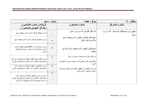 RANCANGAN PELAJARAN TAHUNAN PENDIDIKAN ISLAM KSSR TAHUN 6_DPK 2.0 2021_ SK API API KOTA KINABALU
