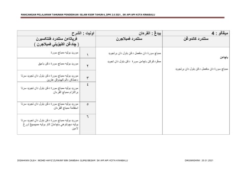 RANCANGAN PELAJARAN TAHUNAN PENDIDIKAN ISLAM KSSR TAHUN 6_DPK 2.0 2021_ SK API API KOTA KINABALU