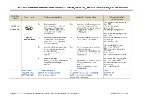 RANCANGAN PELAJARAN TAHUNAN BAHASA MELAYU_KSSR TAHUN 6_DPK 2.0 2021_ SK API API KOTA KINABALU_ALIAS RANTAU WENSIS