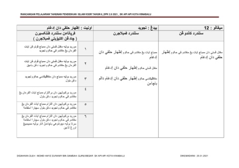 RANCANGAN PELAJARAN TAHUNAN PENDIDIKAN ISLAM KSSR TAHUN 6_DPK 2.0 2021_ SK API API KOTA KINABALU
