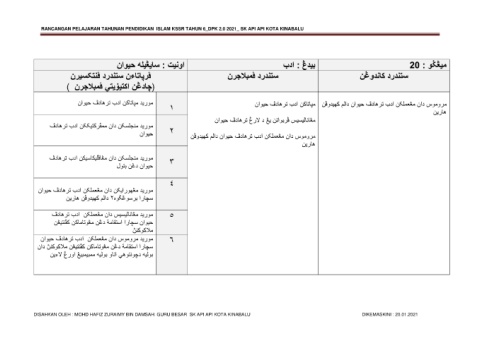 RANCANGAN PELAJARAN TAHUNAN PENDIDIKAN ISLAM KSSR TAHUN 6_DPK 2.0 2021_ SK API API KOTA KINABALU