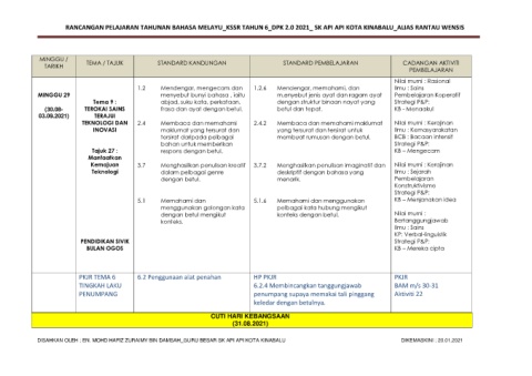 RANCANGAN PELAJARAN TAHUNAN BAHASA MELAYU_KSSR TAHUN 6_DPK 2.0 2021_ SK API API KOTA KINABALU_ALIAS RANTAU WENSIS