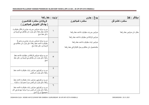 RANCANGAN PELAJARAN TAHUNAN PENDIDIKAN ISLAM KSSR TAHUN 6_DPK 2.0 2021_ SK API API KOTA KINABALU