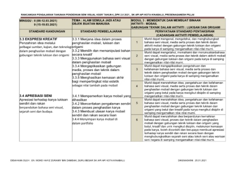 sejarah seni dan budaya. 3.4.3 Membuat ulasan karya mobail origami yang betul dan kreatif pada karya mengikut disiplin di