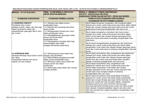 RANCANGAN PENGAJARAN TAHUNAN PENDIDIKAN SENI VISUAL KSSR TAHUN 6_DPK 2.0 2021_ SK API API KOTA KINABALU_PRESENAGANESH PILLAI