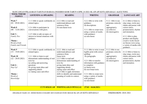 RANCANGAN PELAJARAN TAHUNAN BAHASA INGGERIS KSSR TAHUN 6 DPK 2.0 2021 SK API API KOTA KINABALU ALICE TONG