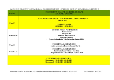 RANCANGAN PELAJARAN TAHUNAN BAHASA INGGERIS KSSR TAHUN 6 DPK 2.0 2021 SK API API KOTA KINABALU ALICE TONG