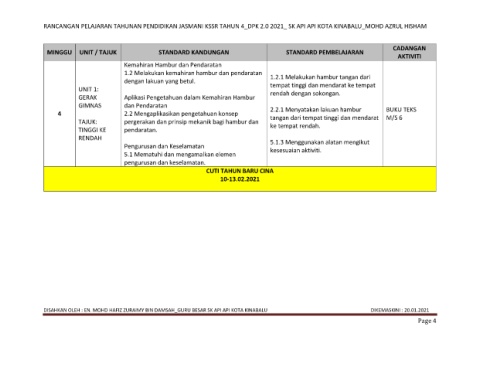 RANCANGAN PELAJARAN TAHUNAN PENDIDIKAN JASMANI KSSR TAHUN 4_DPK 2.0 2021_ SK API API KOTA KINABALU_MOHD AZRUL HISHAM