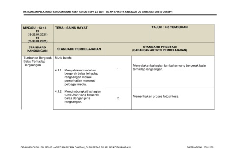 RANCANGAN PELAJARAN TAHUNAN SAINS KSSR TAHUN 4_DPK 2.0 2021_ SK API API KOTA KINABALU_JU MARIA CAN JOB @ JOSEPH