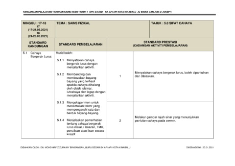 RANCANGAN PELAJARAN TAHUNAN SAINS KSSR TAHUN 4_DPK 2.0 2021_ SK API API KOTA KINABALU_JU MARIA CAN JOB @ JOSEPH