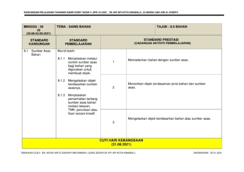 RANCANGAN PELAJARAN TAHUNAN SAINS KSSR TAHUN 4_DPK 2.0 2021_ SK API API KOTA KINABALU_JU MARIA CAN JOB @ JOSEPH