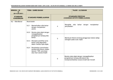 RANCANGAN PELAJARAN TAHUNAN SAINS KSSR TAHUN 4_DPK 2.0 2021_ SK API API KOTA KINABALU_JU MARIA CAN JOB @ JOSEPH