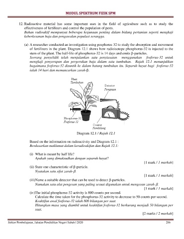 of fertilizers in the plant. Diagram 12.1 shows how radioisotope phosphorus-32 is injected to the