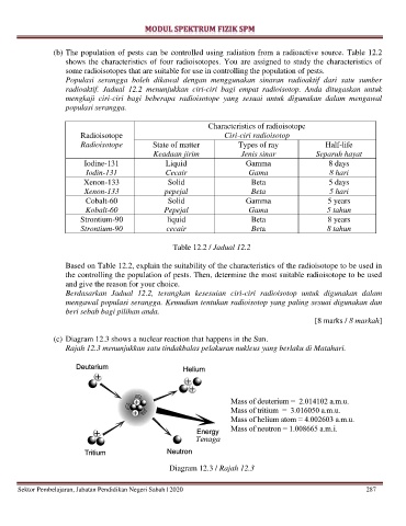 radioaktif. Jadual 12.2 menunjukkan ciri-ciri bagi empat radioisotop. Anda ditugaskan untuk