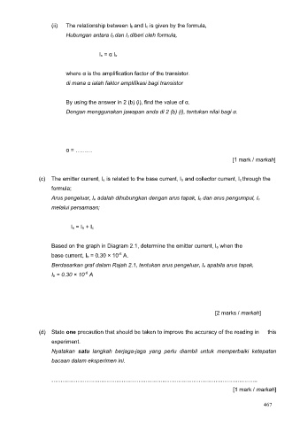 Berdasarkan graf dalam Rajah 2.1, tentukan arus pengeluar, Ie apabila arus tapak,