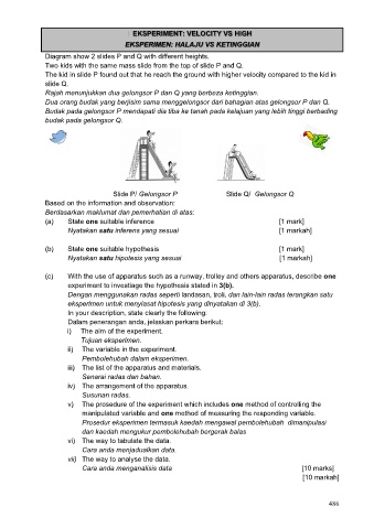 Rajah menunjukkan dua gelongsor P dan Q yang berbeza ketinggian.