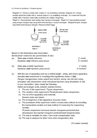 Rajah 4.1 menunjukkan satu buaian bayi berayun menegak. Rajah 4.2 menunjukkan buaian