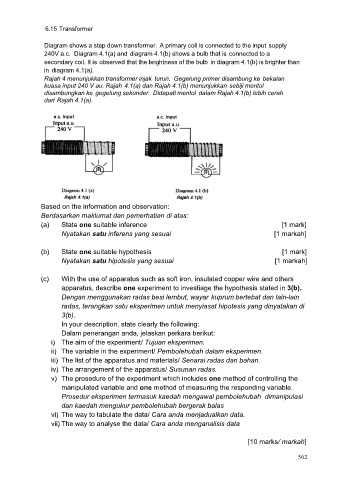 disambungkan ke gegelung sekunder. Didapati mentol dalam Rajah 4.1(b) lebih cerah