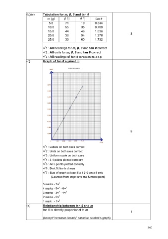 (b)(iv) Tabulation for m, β, θ and tan θ