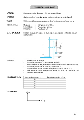 RADAS DAN BAHAN : Pembaris meter, penimbang elektronik, spring, pin (jarum peniti), pemberat berslot, kaki