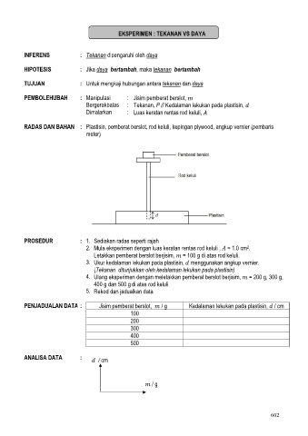 EKSPERIMEN : TEKANAN VS DAYA