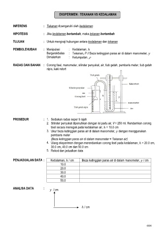 EKSPERIMEN : TEKANAN VS KEDALAMAN