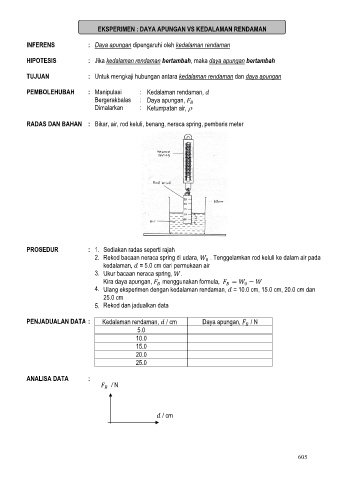 EKSPERIMEN : DAYA APUNGAN VS KEDALAMAN RENDAMAN