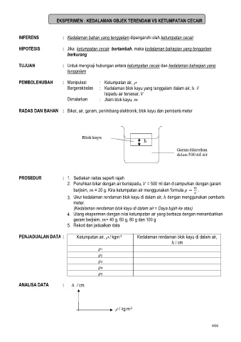 INFERENS : Kedalaman bahan yang tenggelam dipengaruhi oleh ketumpatan cecair