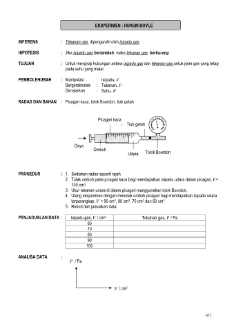 INFERENS : Tekanan gas dipengaruhi oleh isipadu gas