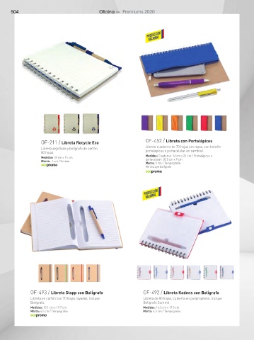 OF-211 / Libreta Recycle Eco OF-452 / Libreta con Portalápices OF-497 / Libreta Spyro OF-496 / Libreta Arco