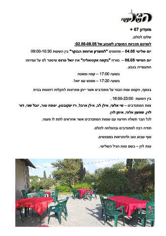 : 02.05 - 08.05 לש עובשל ןודעומה תוינכת םכינפל