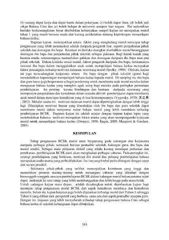 faktor pemangkin terhadap motivasi dalaman seseorang murid (Spolky, 1988). Oleh itu, kajian