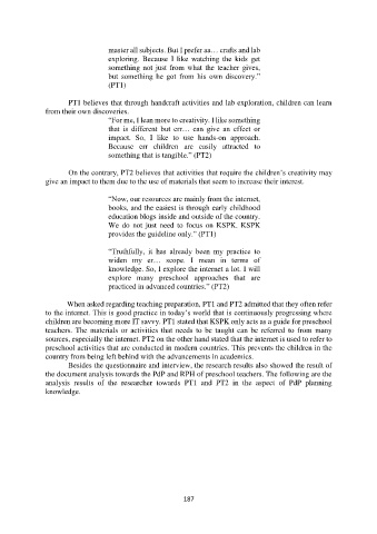 children are becoming more IT savvy. PT1 stated that KSPK only acts as a guide for preschool