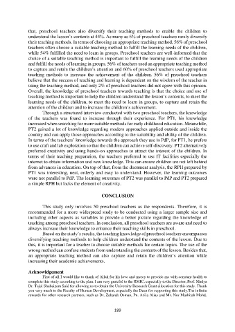 their teaching methods. In terms of choosing an appropriate teaching method, 56% of preschool