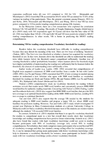 Malaysia could not find a vocabulary threshold because most of the students are modest readers