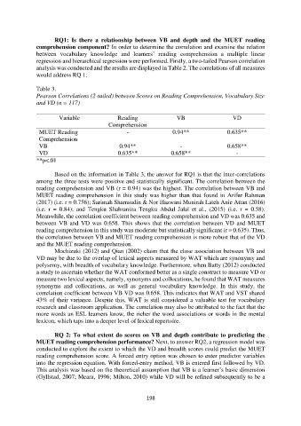 Meanwhile, the correlation coefficient between reading comprehension and VD was 0.635 and