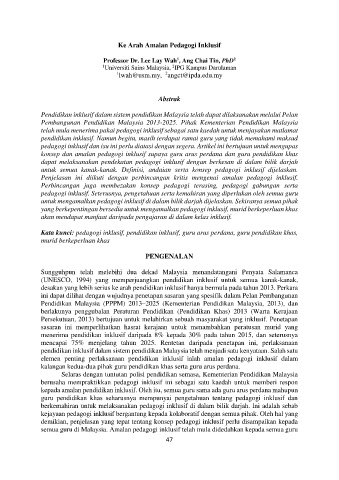 Kata kunci: pedagogi inklusif, pendidikan inklusif, guru arus perdana, guru pendidikan khas,