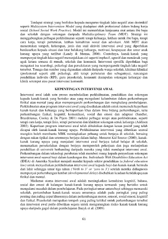 2003). Keperluan program intervensi awal telah dibuktikan dengan kesan positif yang telah