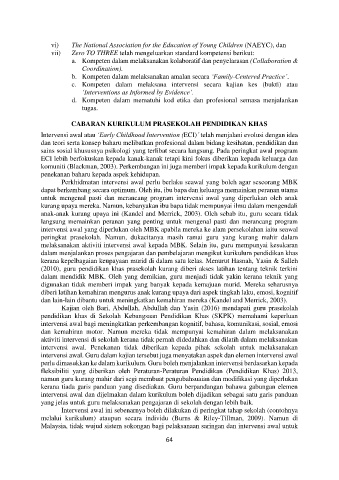 intervensi awal. Guru dalam kajian tersebut juga menyatakan aspek dan elemen intervensi awal