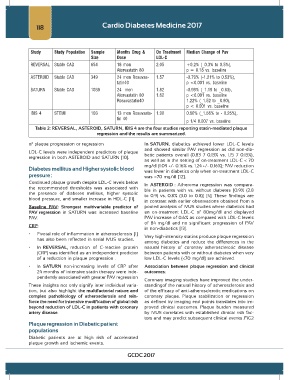 Table 2: REVERSAL, ASTEROID, SATURN, IBIS 4 are the four studies reporting statin-mediated plaque