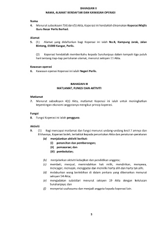 5. (1) Alamat yang didaftarkan bagi Koperasi ini ialah No.B, Kampung Jarak, Jalan