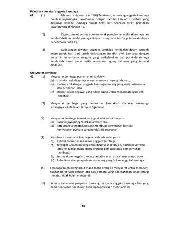 41. (1) Menurut subperaturan 18(6) Peraturan, seseorang anggota Lembaga
