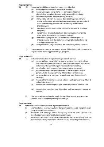 51. (1) Setiausaha hendaklah menjalankan tugas seperti berikut: