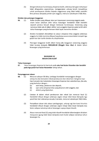 67. Tahun kewangan Koperasi ini bermula pada satu hari bulan Disember dan berakhir