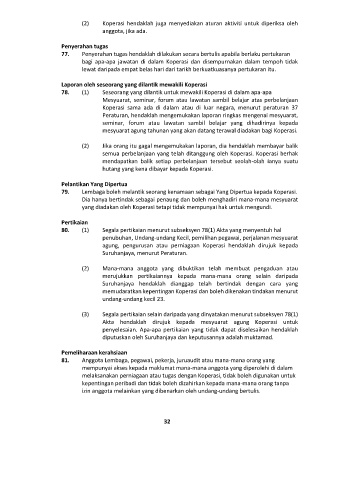 78. (1) Seseorang yang dilantik untuk mewakili Koperasi di dalam apa-apa