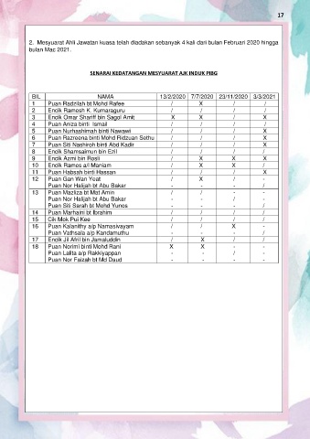 SENARAI KEDATANGAN MESYUARAT AJK INDUK PIBG