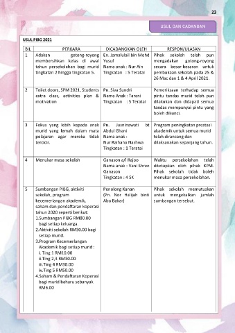 5 Sumbangan PIBG, aktiviti Penolong Kanan Pihak sekolah memutuskan