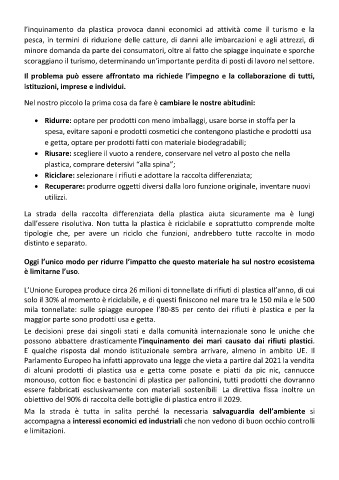 l’inquinamento da plastica provoca danni economici ad attività come il turismo e la